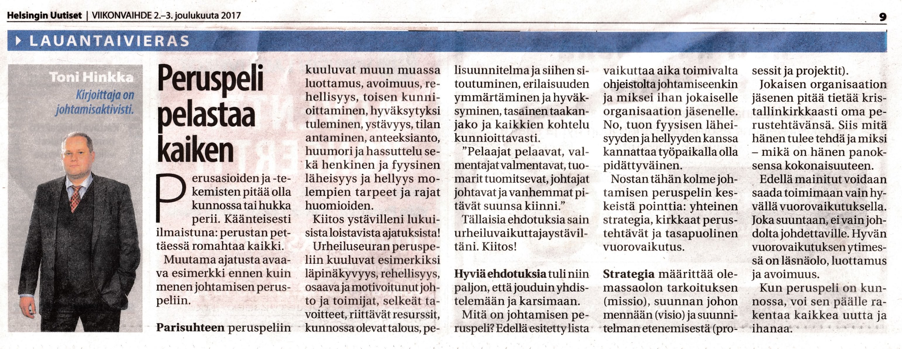 Kolumni julkaistu Helsingin Uutisissa 2.12.2017